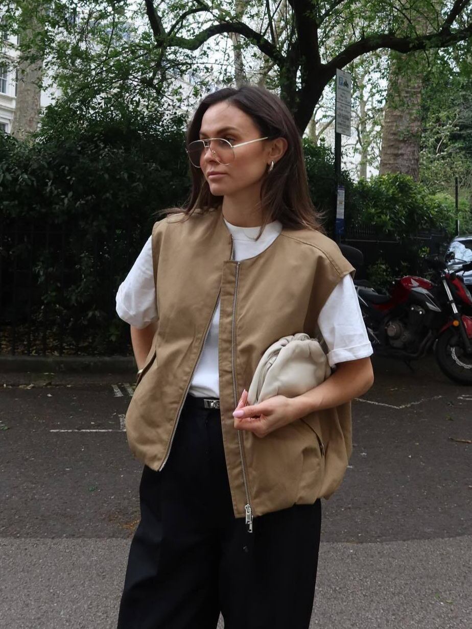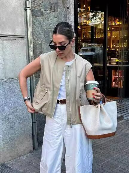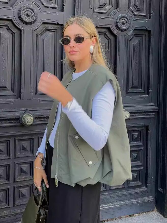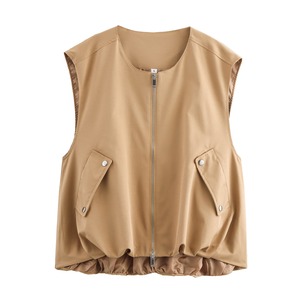 トレンド感あふれるミリタリーテイストのジップアップベスト。ノースリーブデザインで、レイヤードスタイルに最適な一着です。フロントジップとポケットディテールが機能的でありながら、洗練された都会的な印象を演出。裾のドローコード仕様により、シルエットを自在に調整可能。カジュアルからモードまで幅広いスタイリングに対応し、季節を問わず活躍するワードローブの必需品です。