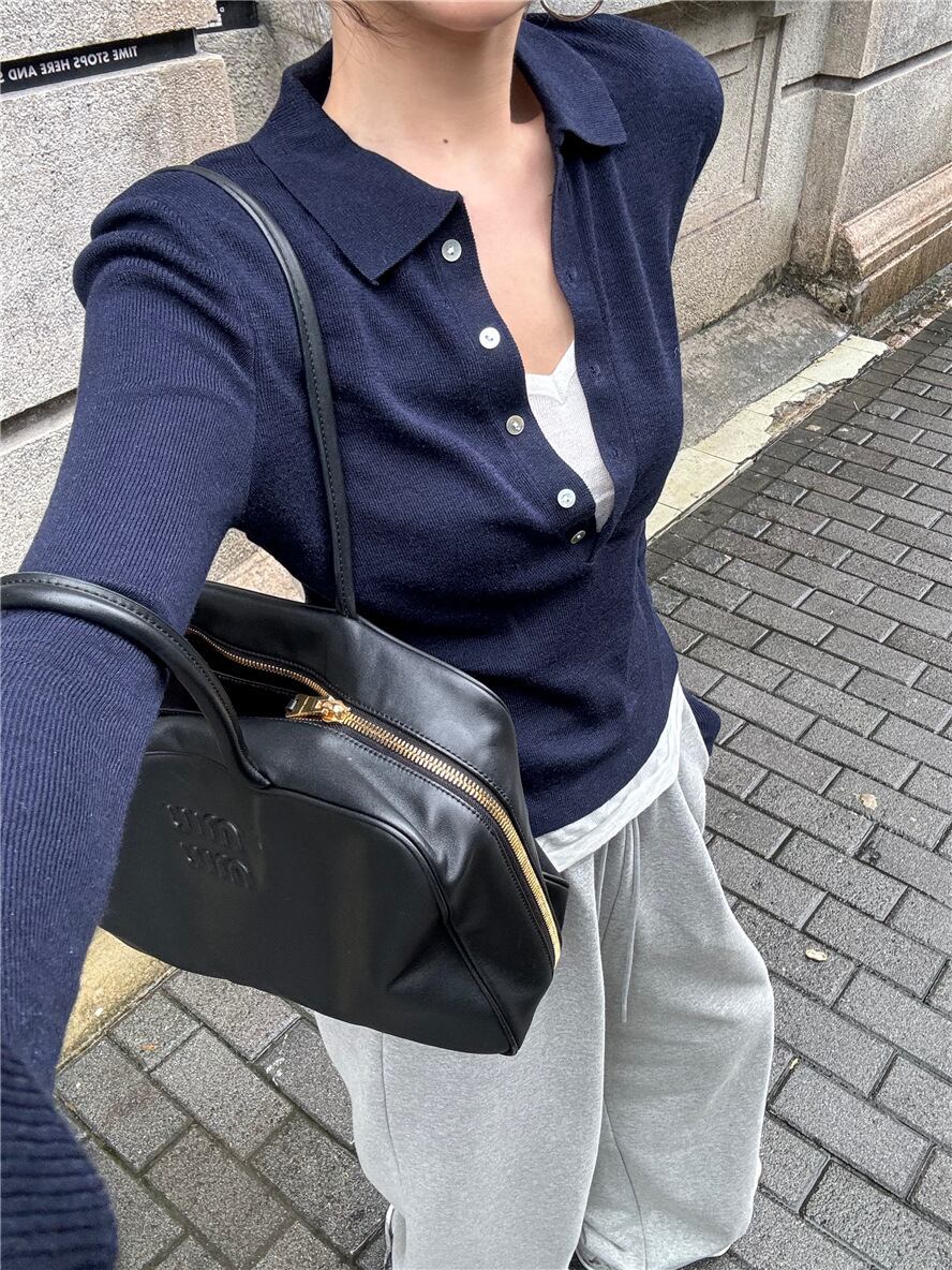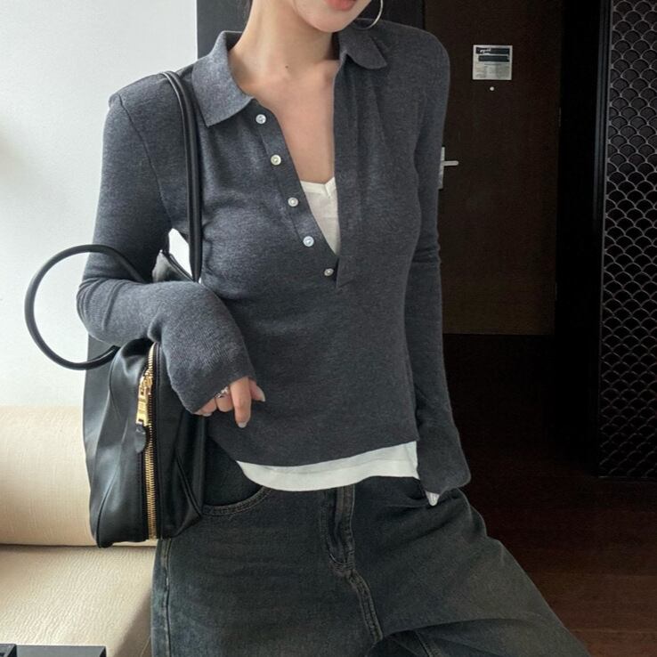 ポロシャツのような襟付きデザインが特徴的な、上品なニットプルオーバー。柔らかなニット素材でありながら、きちんと感のある襟元が大人の女性らしさを演出。フロントボタンで開閉でき、着こなしの幅が広がります。薄手で軽やかな着心地ながら、しっかりとした編み地で型崩れしにくい仕上がり。シンプルなデザインで、オフィスカジュアルからデイリーまで幅広く活躍。インナーとの重ね着も楽しめる、春秋の定番アイテムです。
