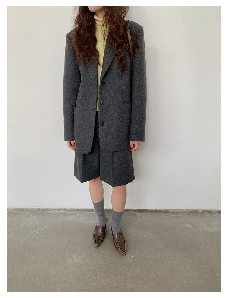 上品な光沢感のあるウール調素材を使用した、オーバーサイズテーラードジャケット。シングルボタンのミニマルなデザインで、こなれ感のある着こなしを演出。ハーフパンツとのセットアップ対応で、統一感のあるスタイリングが楽しめます。ゆったりとしたシルエットながら、きちんと感も併せ持つ絶妙なバランス。同素材のハーフパンツと合わせてセットアップスタイルに、単品使いでカジュアルダウンも可能。オフィスカジュアルから休日スタイルまで、幅広いシーンで活躍する万能アイテムです。