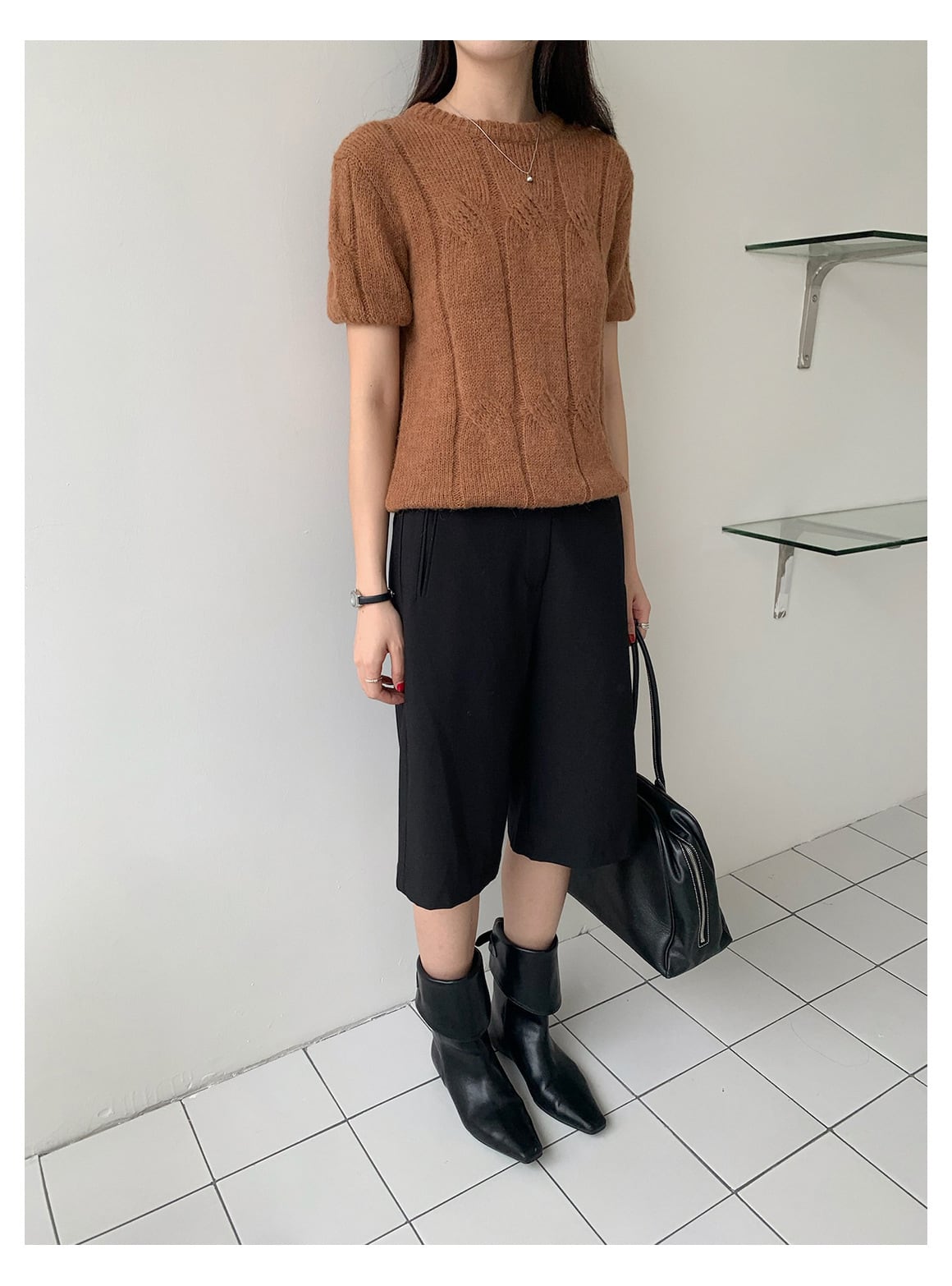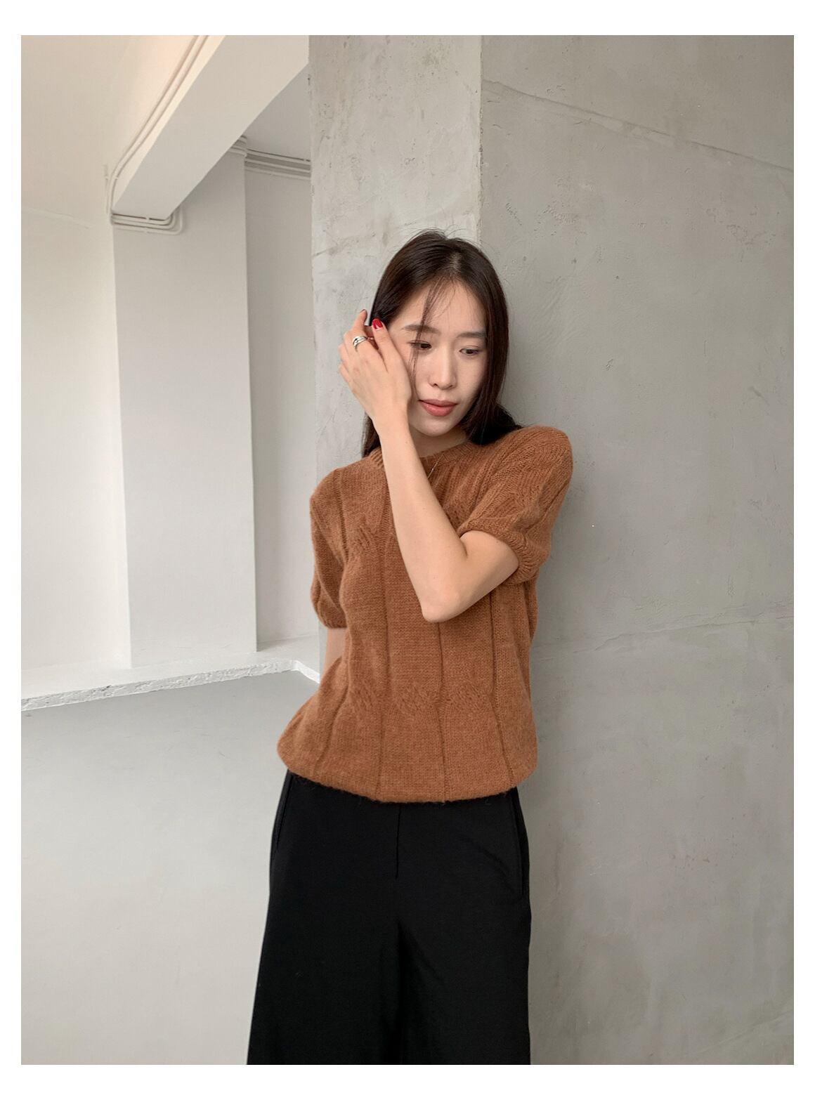 ウール混の上質な素材で、肌触りが良く保温性も抜群。七分袖の絶妙な袖丈で、季節の変わり目から秋冬まで長く愛用できます。
